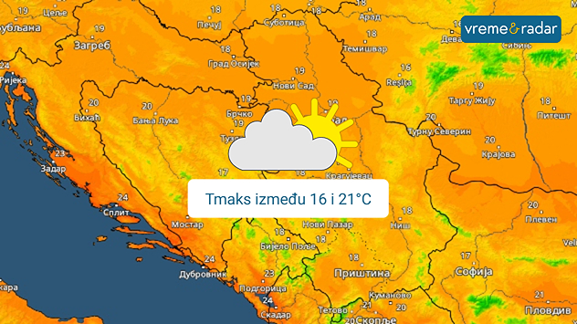 U petak promenljiva oblačnost i sunčani intervali, prepodne lokalno u brdsko-planinskim krajevima može biti kratkotrajne kiše. Mestimično uz umeren do pojačan severozapadni vetar. Maksimalna temperatura uglavnom između 17°C i 21°C.