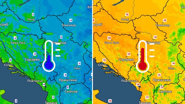 Ujutro ispod 0°C, danju i oko 15°C