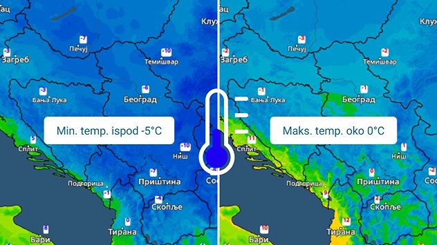 Ujutro ispod -5°C, tokom dana oko 0°C