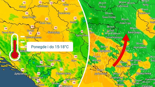 Osetno toplije, uz vetar južnih smerova